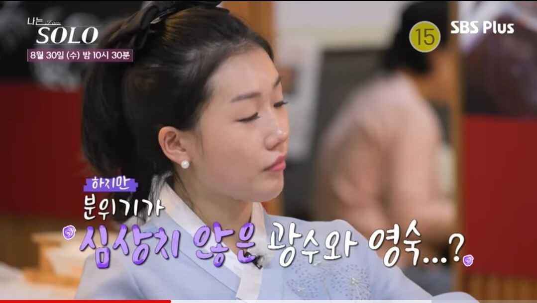 영숙이 광수와 데이트를 하기 위해 이동하는 차 안에 '영숙님에 비하면 나는 산전수전도 아니지'라며 말하는 광수에게 불편한 기색을 드러내며 표정이 굳게 됩니다. 하지만 이런 분위기를 감지하지 못하고 식당에 도착한 뒤에도 자기소개 강렬하게 들었다고 이야기를 꺼내자.. 영숙은 자신의 맘이 상한 이유를 말하며 남의 상처 쉽게 꺼내면서 산전수전 겪었다고 말하지 말라고 합니다. 하지만 눈치가 정말 없는 건지 두 사람이 이야기 도중 광수는 또 자신의 삶이 영숙의 삶처럼 파란만장하지는 않다고 이야기를 하게 됩니다. 이에 결국 영숙은 자리를 박차고 일어나며 혼자 숙소로 돌아오게 됩니다.