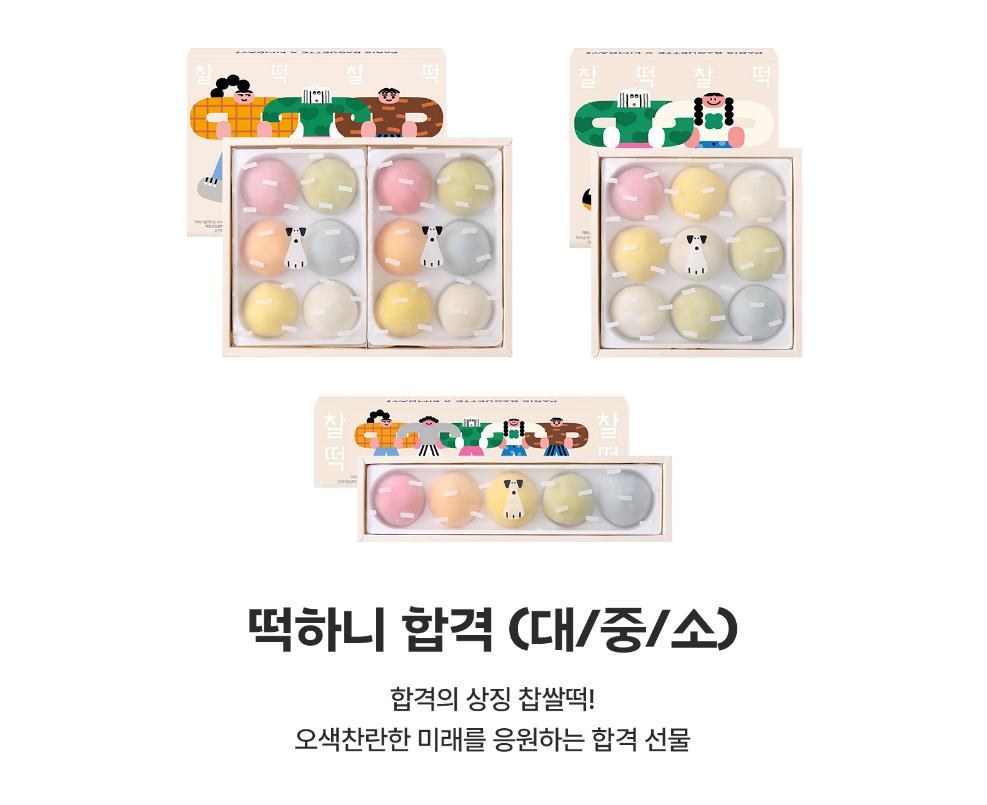 - 찹쌀떡, 전통 엿, 봉봉 초콜릿 구성