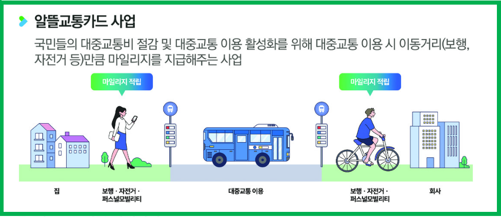 2020년 국토교통부에서 시행하는 제도로 버스나 지하철 등 대중교통을 이용하기 위해 걷거나 자전거로 이동하는 거리만큼 최대 20%의 마일리지를 지급하는 제도입니다. 또한 카드사에서 10%의 추가할인을 제공하고 있어 최대 30% 교통비 할인혜택을 받을 수 있습니다. 월 15회 이상 이용하고 1회 탑승시 최대 800m가 기준이며 800m 미만이더라도 거리에 비례해서 마일리지를 지급합니다.